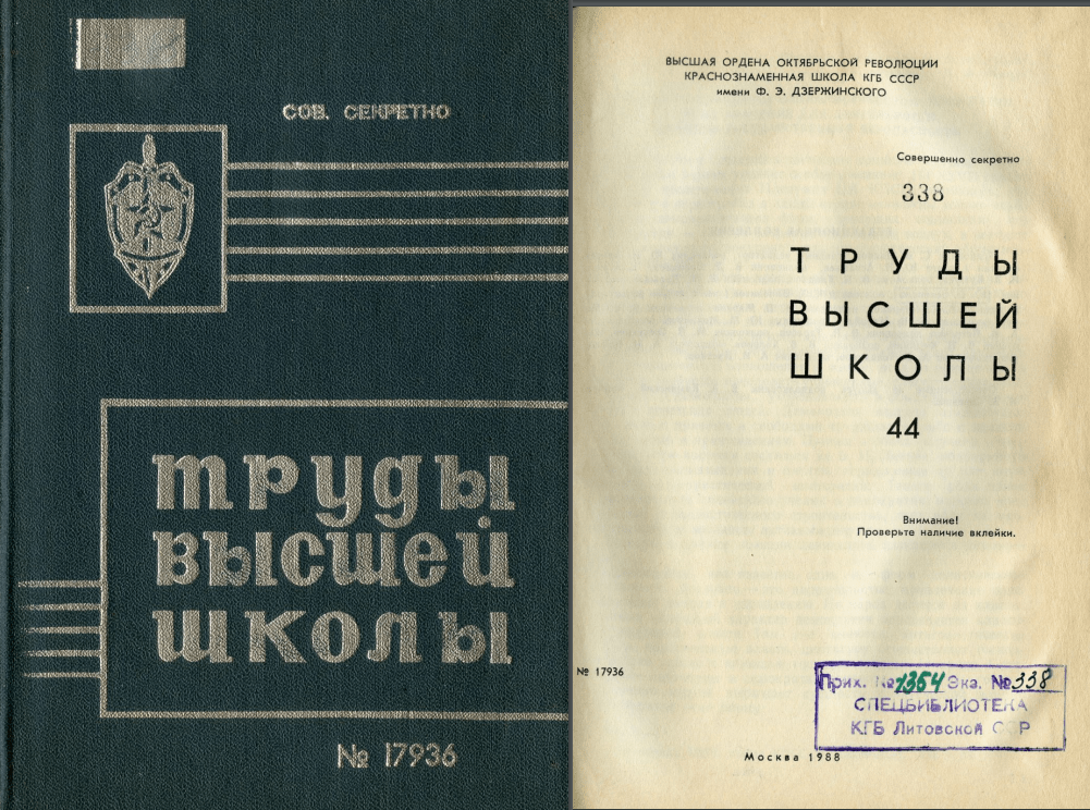 MATERIALS FROM THE HIGHER SCHOOL OF THE DZERZHINSKY KGB SCHOOL OF THE USSR