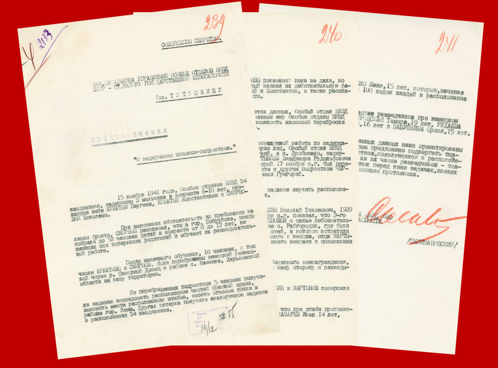 Based on this information, the NKVD Special Department of the 6th Army directed the its subordinate NKVD Special Departments from the divisions, since the possibility has not been ruled out of a mass deployment of juvenile agents by the Germans.