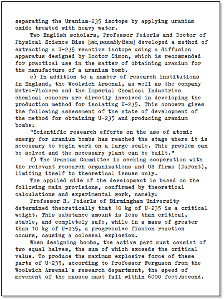 This is the second in a short series of declassified Russian-language documents reporting on the race to be the first country to possess a nuclear bomb.