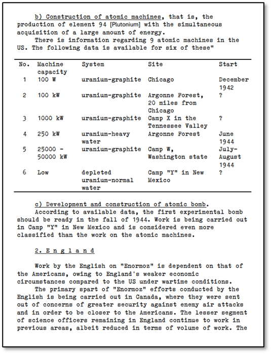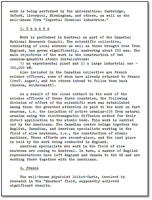 The following translation is the third in a short series of declassified Russian-language documents reporting on the race to be the first country to possess a nuclear bomb.
