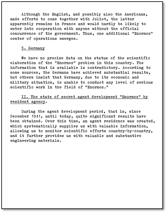 The program described above would become known semi-formally as “Enormoz” which, as the savvy reader will recognize, is taken from the English word “enormous.” The program was clearly one of Beria’s and Stalin’s highest priorities.