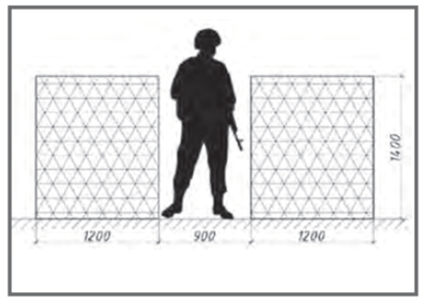 Concealment from enemy intelligence collection is carried out using all known technical methods and means of camouflage, including optical camouflage, artificial blinds (Figure 9), camouflage paint, the use of mock-ups of dummy installations, including radar, thermal, smoke, aerosol, and light camouflage.