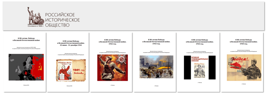 On 17 September 2025, to commemorate the 80th anniversary of the Great Patriotic War, the Russian Historical Society has published a six-volume collection of over 800 archival documents, declassified by the Russian Foreign Intelligence Service (SVR), covering the entire period of World War II — from Nazi Germany’s invasion of Poland to the defeat of Japan. An online version of the collection has been published on the website of the Russian Historical Society, and copies of all six volumes (in PDF form) are free.
