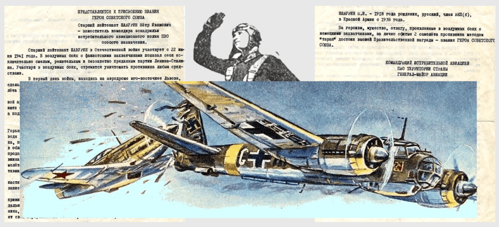 Shavurin’s fighter, with a bent propeller and a torn-off wing, became uncontrollable and went into an inverse dive. After several attempts, Petr managed to bail out and parachute to the ground. The documents found in the wreckage of the enemy aircraft were of great value to the Soviet command .
